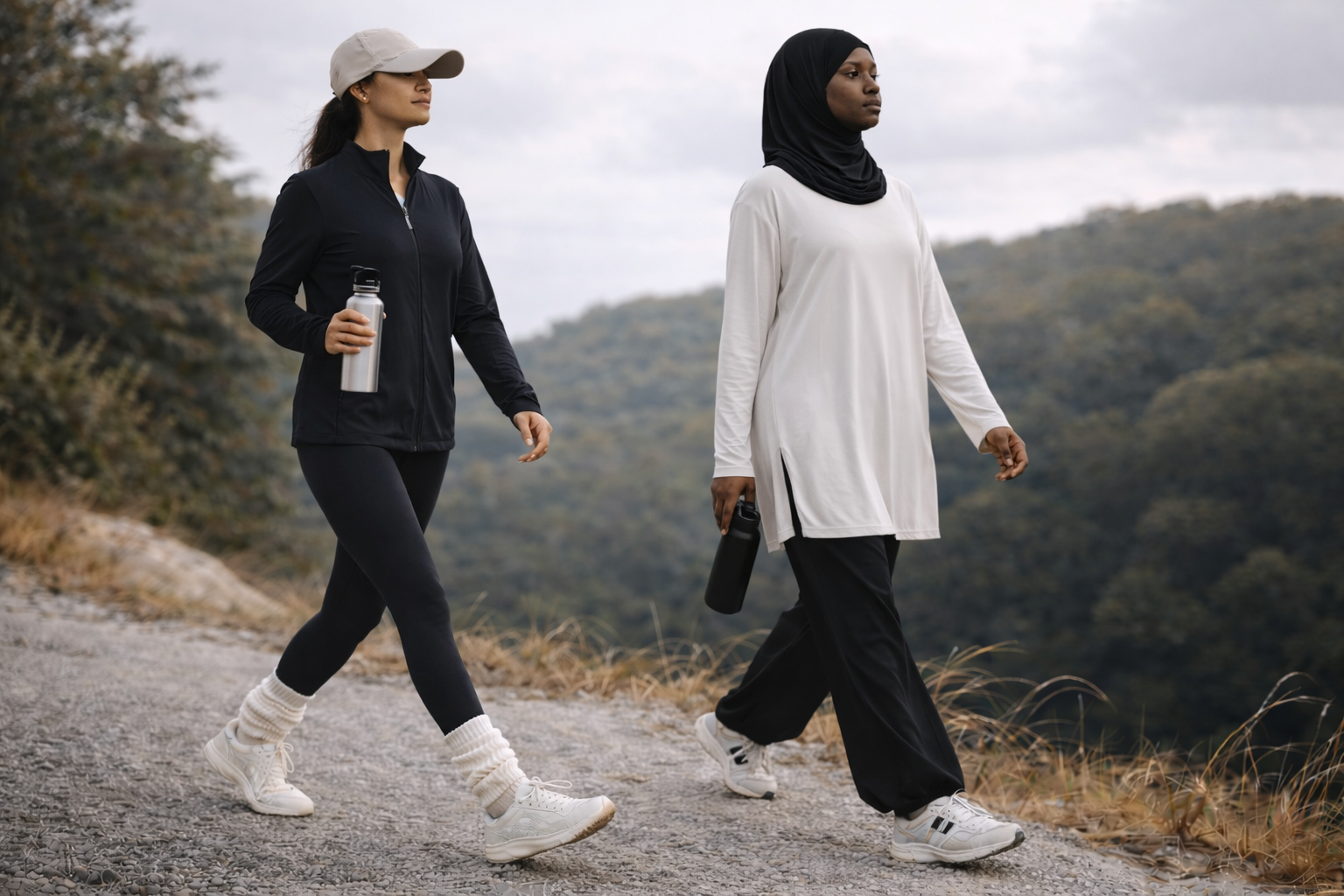 Soft, breathable fabrics made for walking, stretching, and everyday motion.